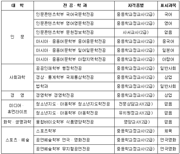 4. 접수대상 : 교직과정이 설치 승인된 학부(과)의 2학년 재학생 중 교직과정을 이수하고 교원자격증을 취득하고자 하는 학생